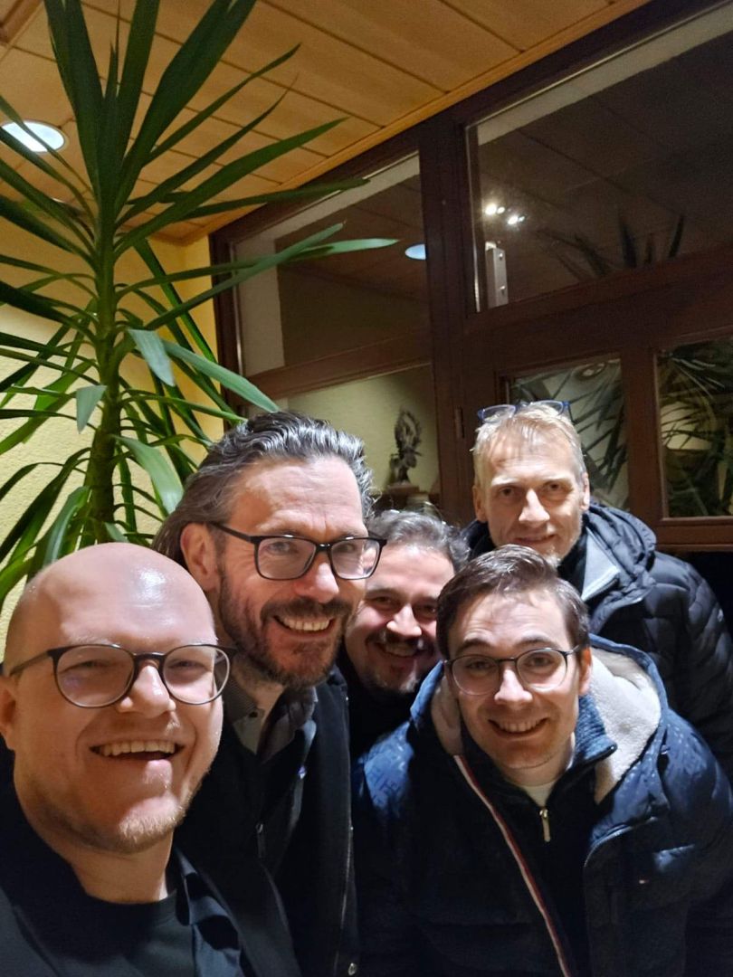 Im Anschluss an das Konzert konnten unsere Aktiven wie auch die Gäste im Vereinsheim dem Witz, dem Charme, der Wärme und der Herzlichkeit der Ensemblemitglieder – Wolfram Lattke, Robert Pohlers, Frank Oszimek und Daniel Knauft (Holger Krause fehlte leider kankheitsbedingt) begegnen. Viele nutzten die Gelegenheit zum persönlichen Austausch mit diesen besonderen Menschen.